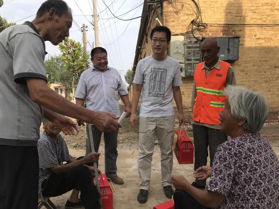 国庆、中秋双节将至,为帮助帮包村老人们过上一个欢乐、祥和、幸福的节日,省金融办第一书记带领村中党员、大学生村官,通过开展党员活动的形式,挨家挨户走访了堂邑镇三合村、苏堤口村70岁以上的老人,为他们送去了月饼、花生油等节日慰问品,使群众感受到了党组织的关心,进一步密切了党员和群众之间的联系,提升了村党支部的群众威信。
